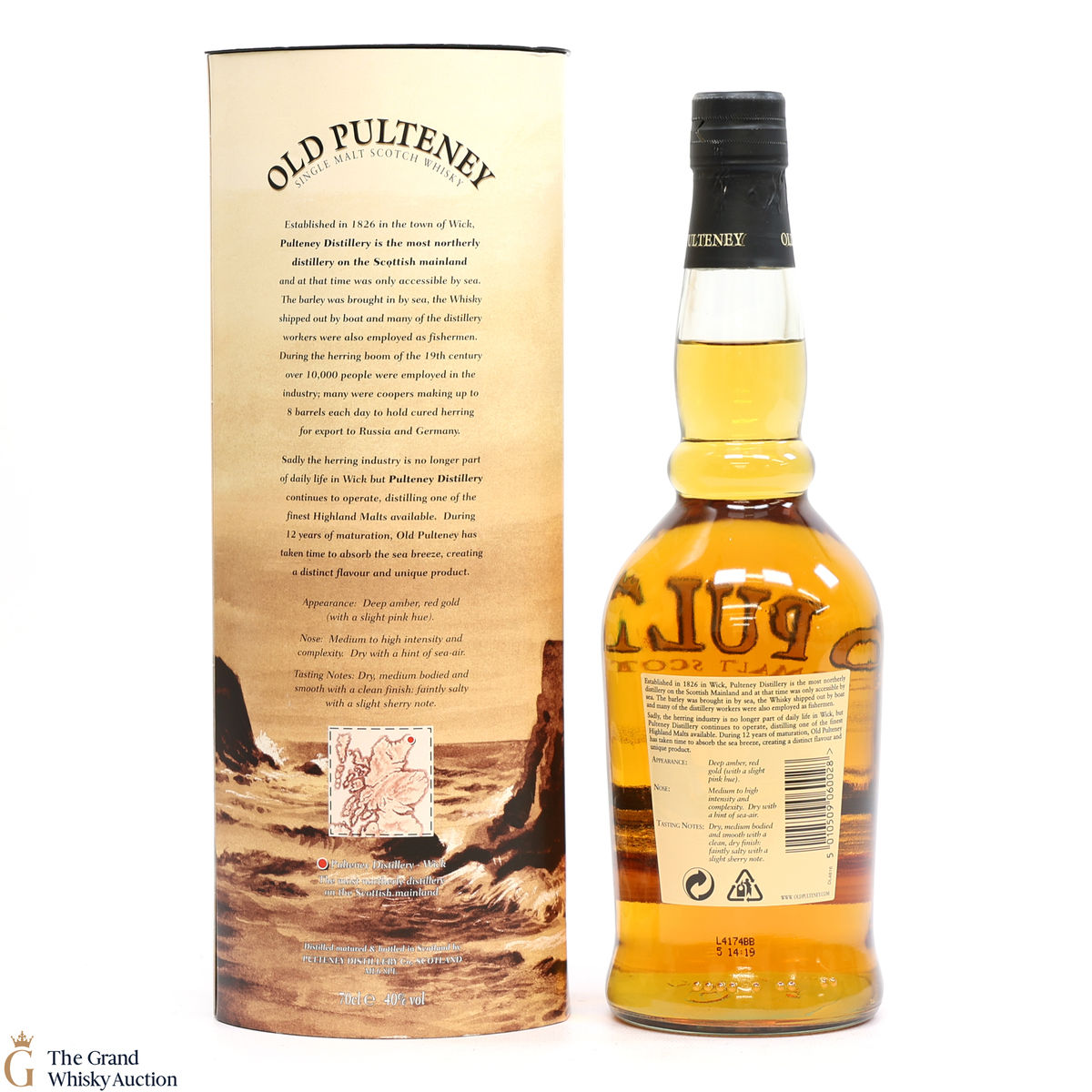 Old Pulteney is known as the Maritime Malt due to the distillery's location in the very North of Scotland and this is honoured with the unique shape of the bottle.