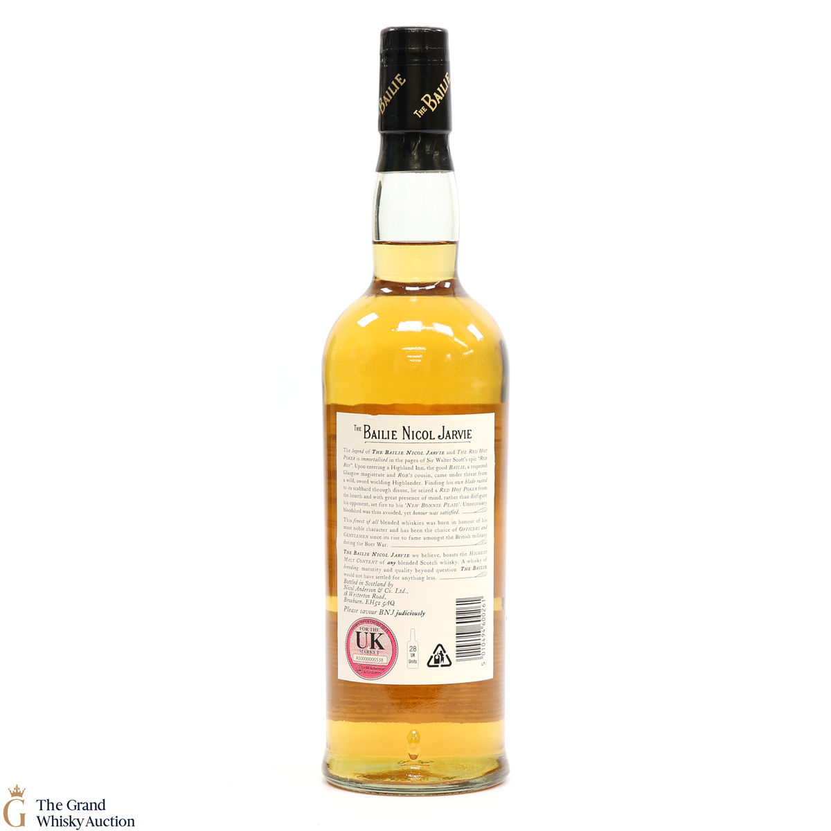 Due to the various ages of bottles and their seals, the condition of liquid is at the buyer's discretion and no claim can be lodged against failure/leakage in transit. Loss and breakage cover is available at 3% of the hammer price as standard. If the lot is not insured, no claim can be lodged against the courier or The Grand Whisky Auction for breakage or loss in transit.