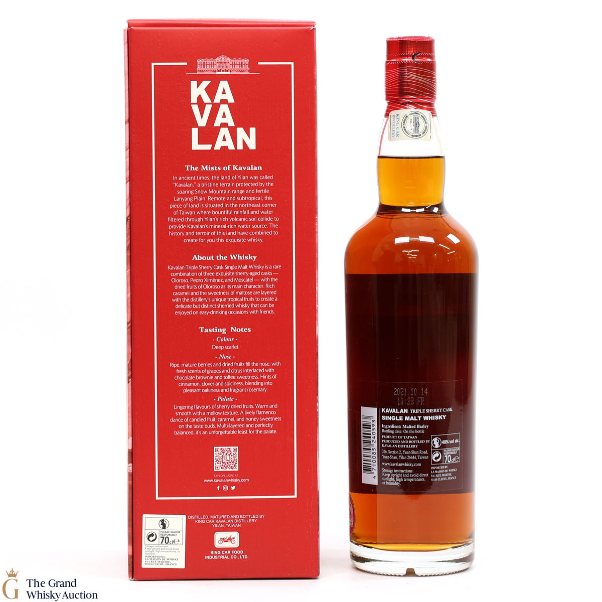 This is a 70cl bottling of single malt from Taiwan's Kavalan. Only operating since 2005 they have impressed with their young but full flavoured whisky. A rare combination of 3 exquisite sherry-aged casks - oloroso, Pedro Ximenez and Moscatel.