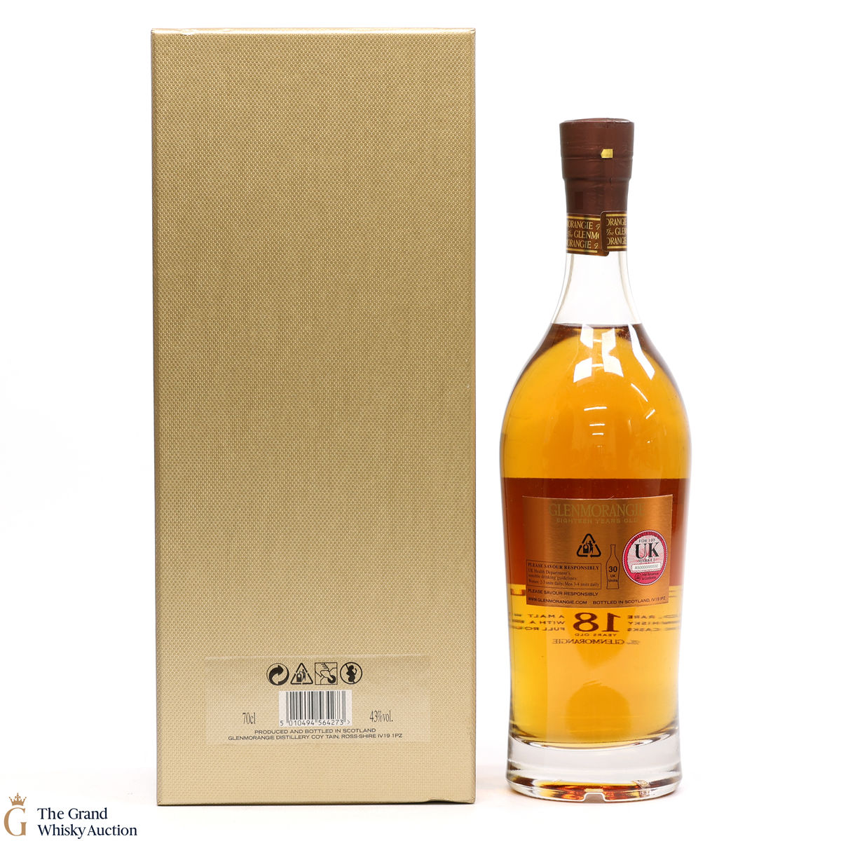 This bottle is an 18-year-old Extremely Rare, Highland single malt produced by Glenmorangie. It has been perfected by the sixteen men of Tain who have specially aged this bottle for 18 years in superior oak casks.