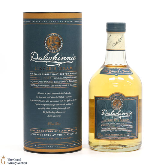 This Dalwhinnie career and retirement the work of Lizzie Stewart, Scotland’s first female operator in Malt Distilling. Lizzie's Dram recognises her 31 years’ service at Dalwhinnie Distillery, working in the warehouse, mash house and the still house. This was a distillery exclusive bottling, released in March 2018, matured entirely in refill bourbon casks. This is one of 7,500 bottles.