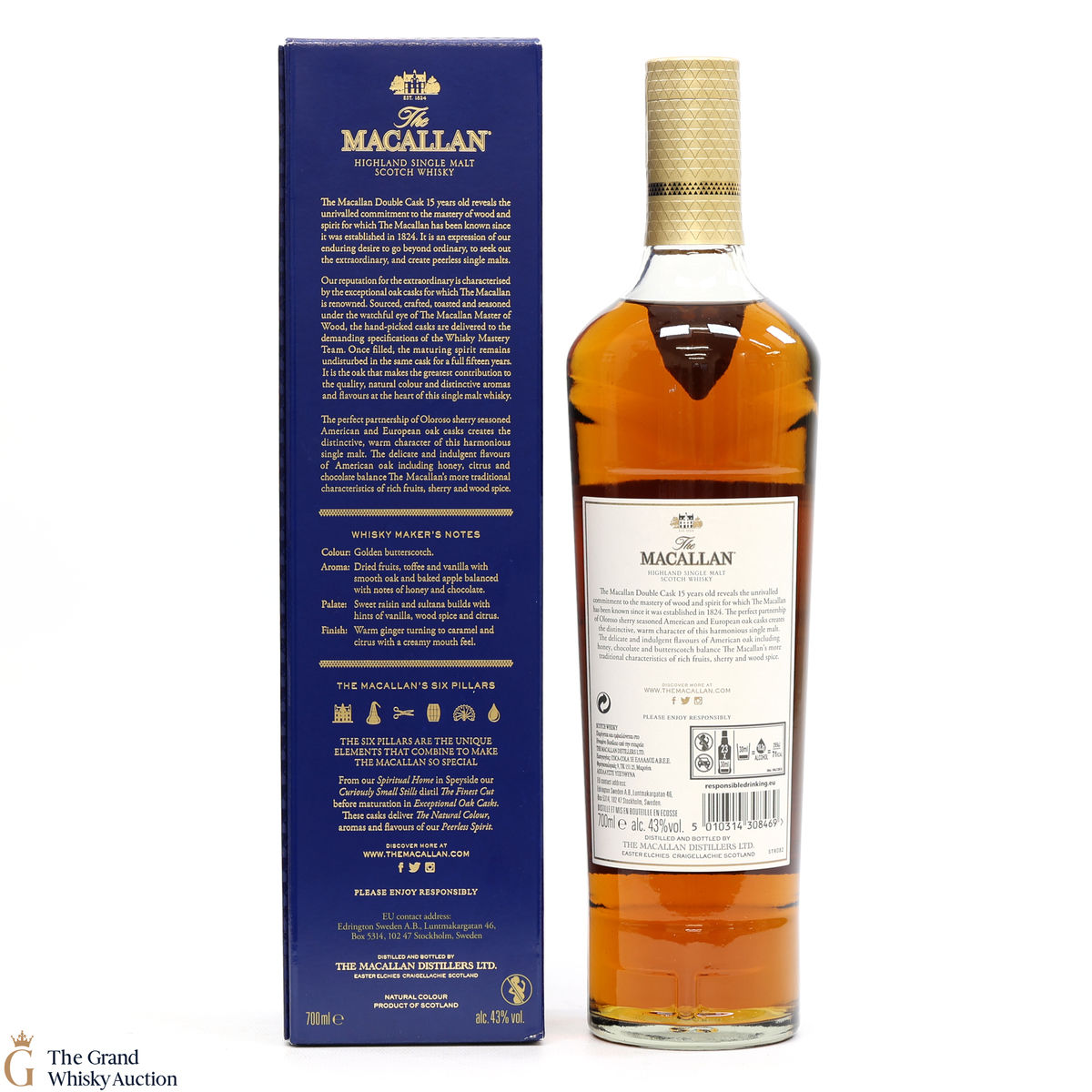 This 15 Year Old Macallan was matured in a combination of American and European Sherry oak for a minimum of 15 years. It is part of the Macallan Double Cask range, which marries the classic Macallan style and the sweetness of American oak.