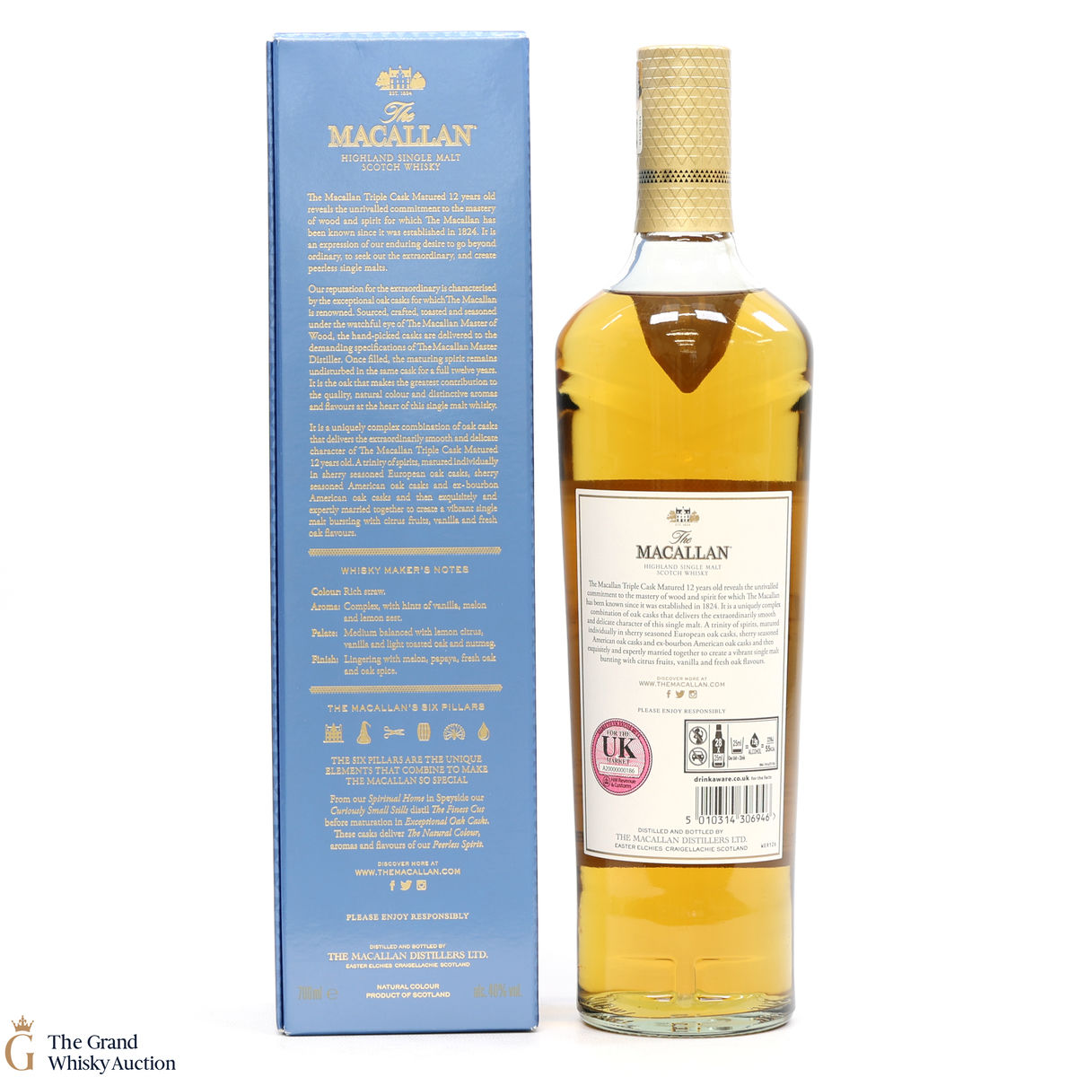 The 12 year old single malt was matured for 12 years and drawn from a combination of European sherry seasoned casks, American sherry seasoned casks and American ex-bourbon casks. It is part of Macallan's Triple Cask range which was launched in 2018, taking the place of the Fine Oak range.