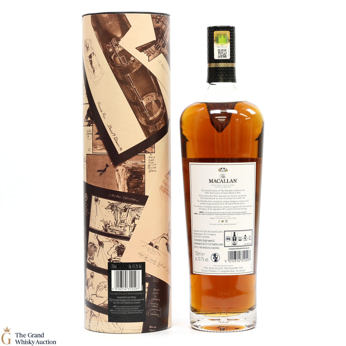 The remarkable James Bond 60th Anniversary Release is a celebration of 007 and The Macallan as modern innovators linked by their Scottish heritage. Each bottle’s packaging features an original illustrative design and colour to denote the decade it represents.