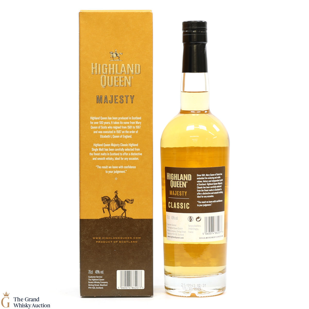 The Highland Queen Majesty Classic is made up of whiskies aged in oak casks.