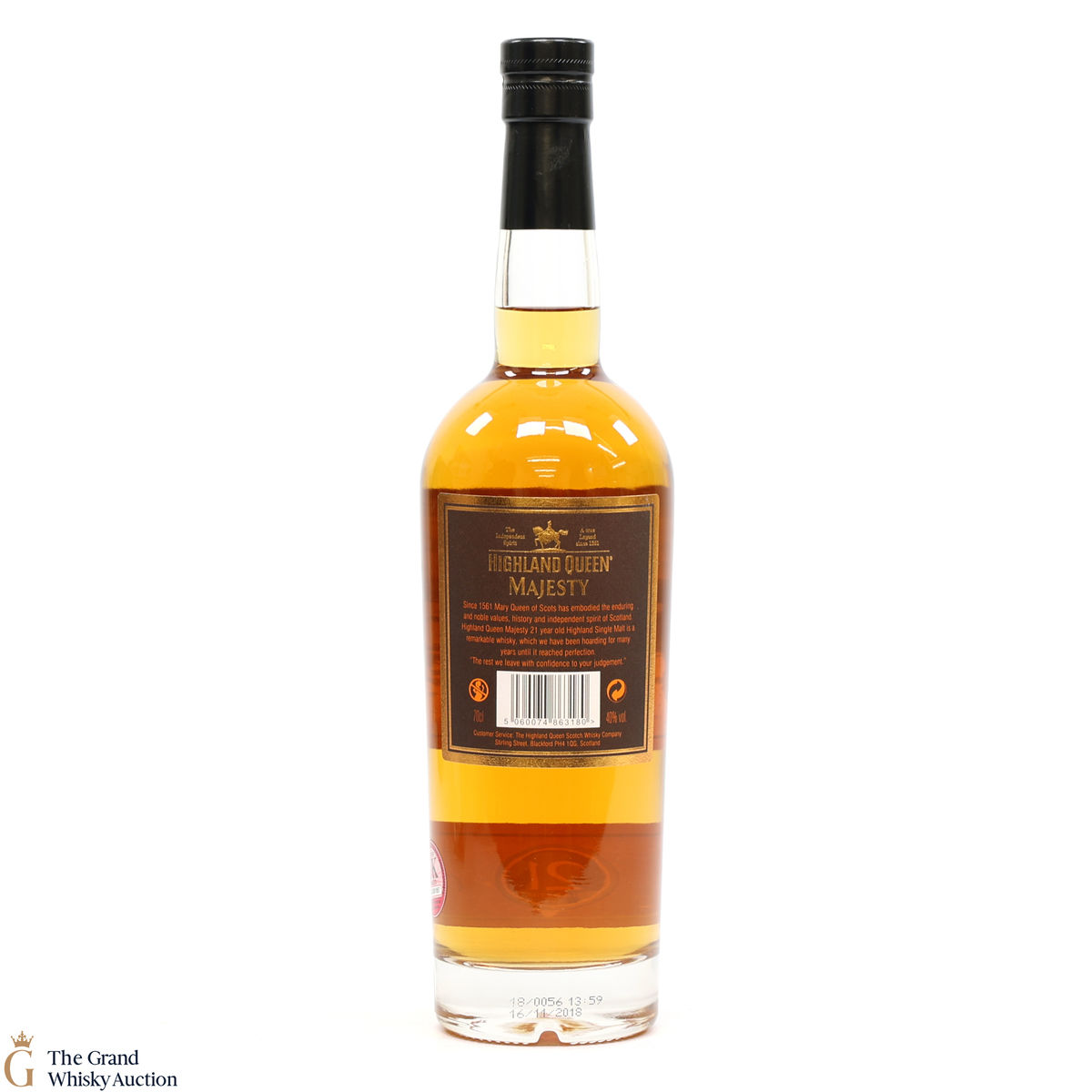 The Highland Queen Majesty is made up of whiskies aged in oak casks. Distilled in 1996, this single malt was bottled 21 years later in 2018 at a strength of 40% ABV.