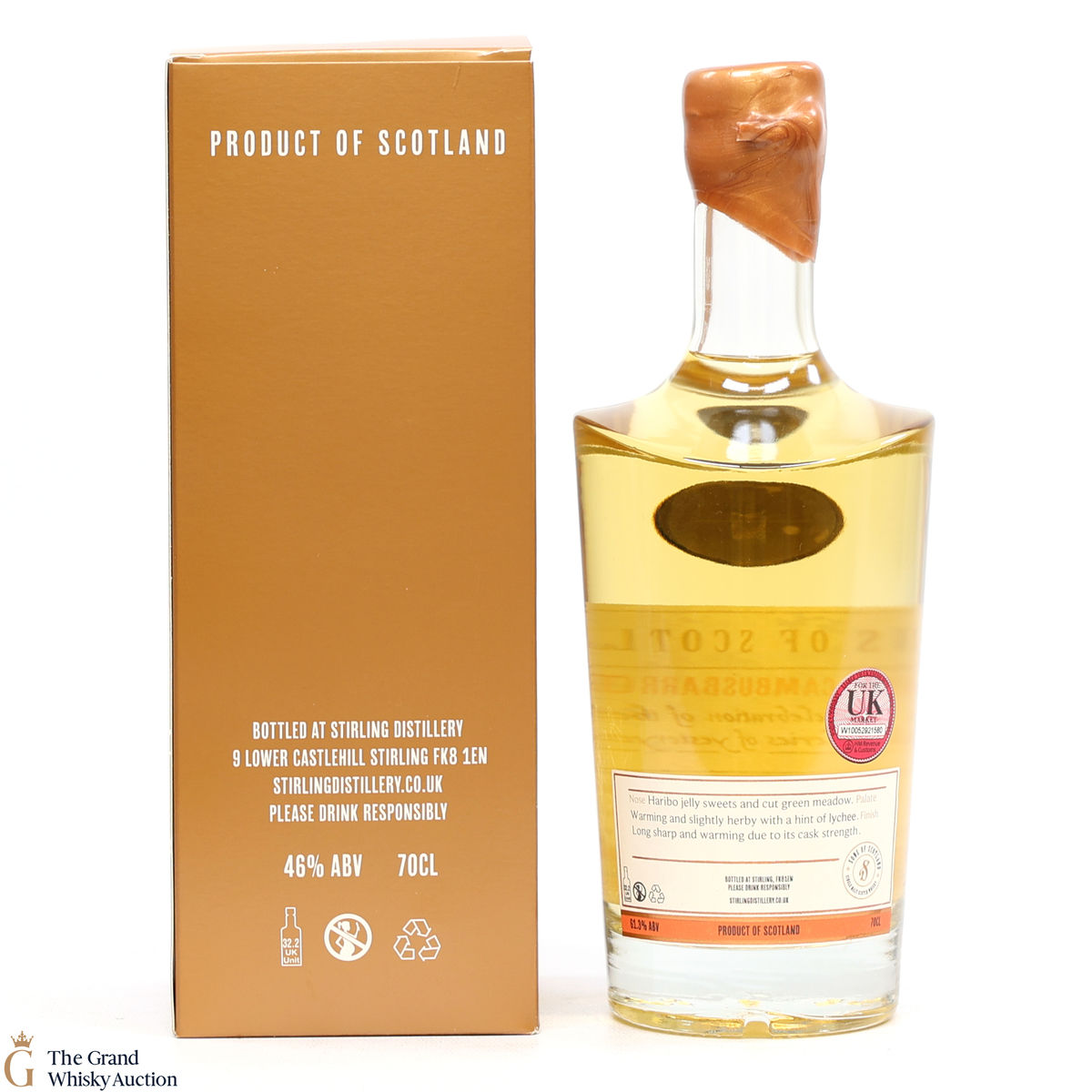 Due to the various ages of bottles and their seals, the condition of liquid is at the buyer's discretion and no claim can be lodged against failure/leakage in transit. Loss and breakage cover is available at 3% of the hammer price as standard. If the lot is not insured, no claim can be lodged against the courier or The Grand Whisky Auction for breakage or loss in transit.