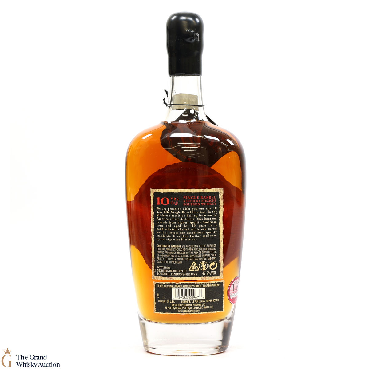 A single barrel Kentucky Bourbon Whiskey from Michter's, this spirit has been aged for 10 years in hand-selected charred white oak barrels.