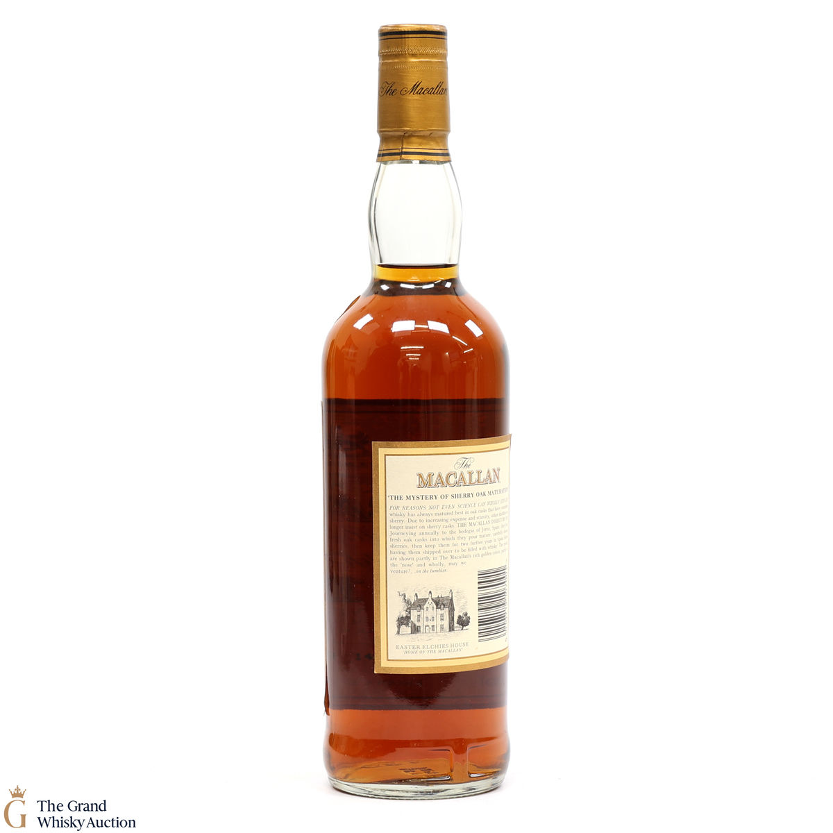An old bottling of Macallan 10-year-old, which has been exclusively matured in sherry oak casks. Bottled in the early 2000s.
