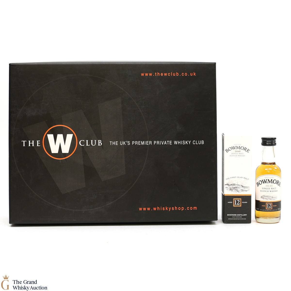 A membership box from The W Club. Inside is a 5cl bottling of Bowmore 12 Year Old (40%), a glass and a copy of Jim Murray's Whisky Bible 2013.