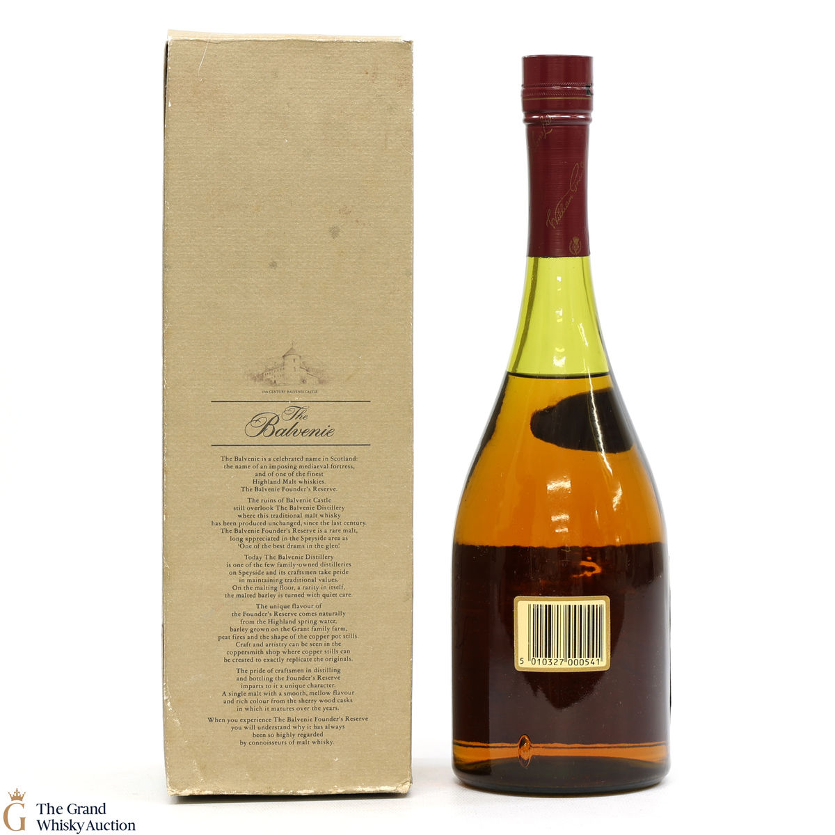 This bottle is the same shape as cognac and has been long since discontinued making it a collectable item. This 10-year-old from Speyside was labelled the founder's reserve.