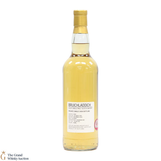 This is a private cask bottling of Bruichladdich distilled in 2001 and matured in Bourbon HHD #0560 before being bottled at 15 years of age. This single malt was bottled in December 2016 at 56.8% ABV.