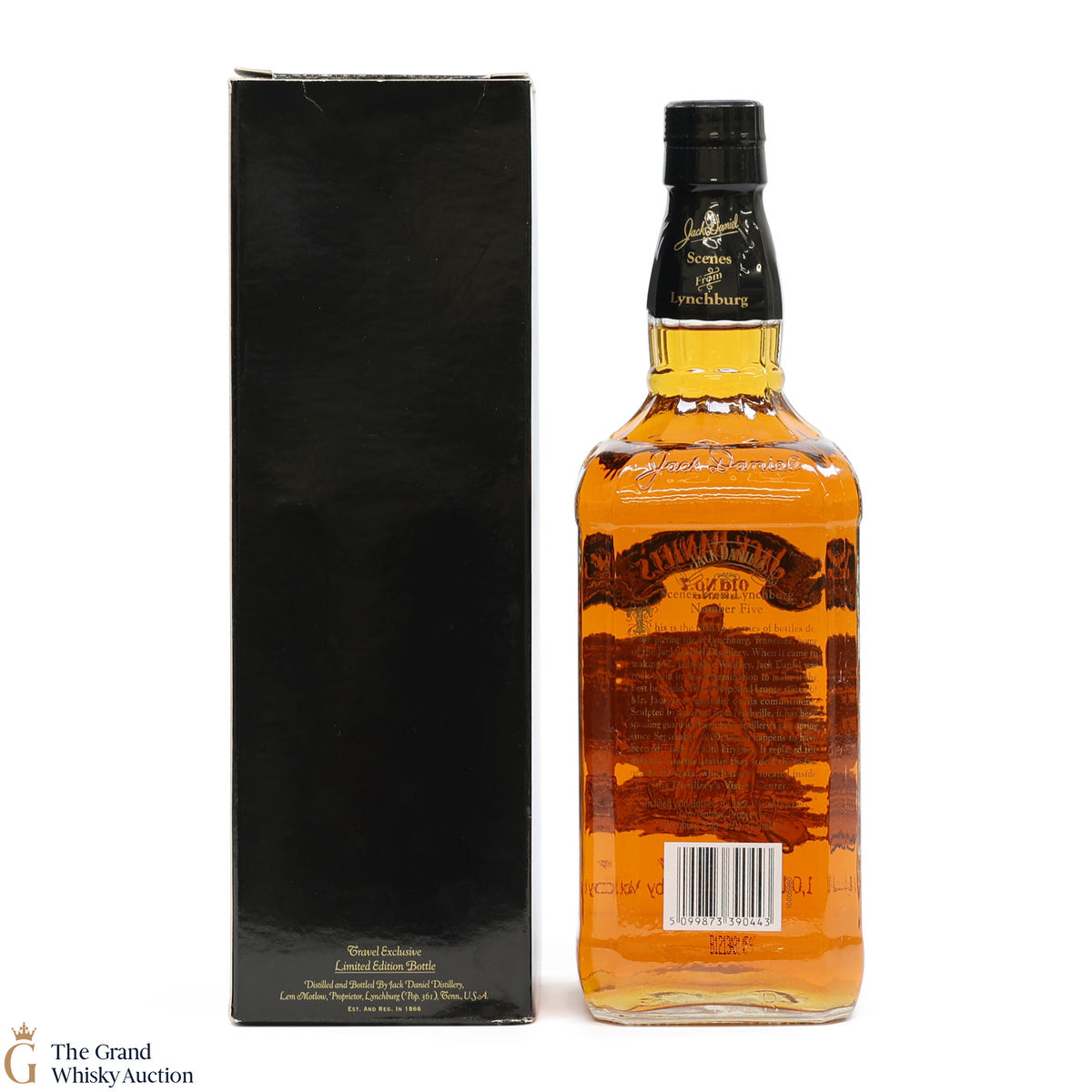 This is the 5th bottle of Scenes From Lynchburg released in 2007 at 86 proof. With an image of the new statue that currently stands by the cave spring which was erected in 2000 and replaced the older monument to Jack Daniel.