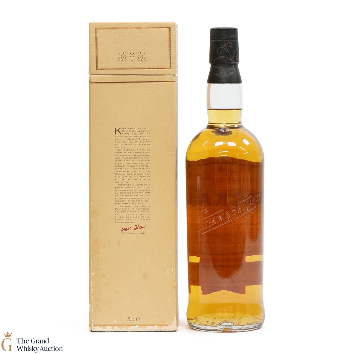 Due to the various ages of bottles and their seals, the condition of liquid is at the buyer's discretion and no claim can be lodged against failure/leakage in transit. Loss and breakage cover is available at 3% of the hammer price as standard. If the lot is not insured, no claim can be lodged against the courier or The Grand Whisky Auction for breakage or loss in transit.