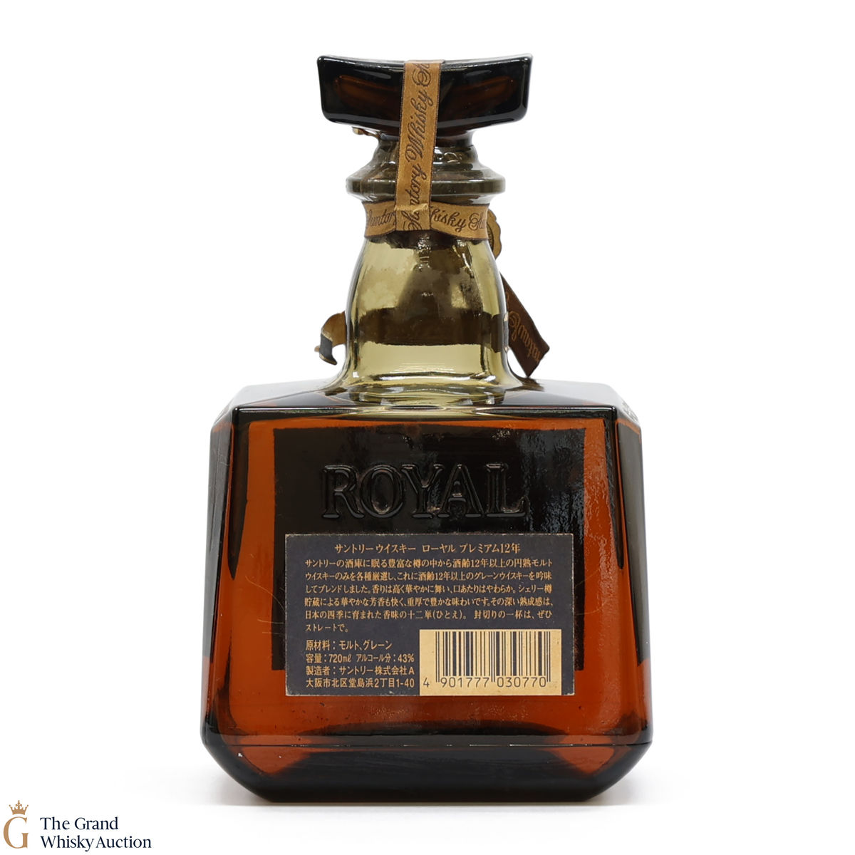 This blended whisky is an 86-proof bottle of Royal 12-year-old, bottled by Suntory in a decanter-shaped bottle.