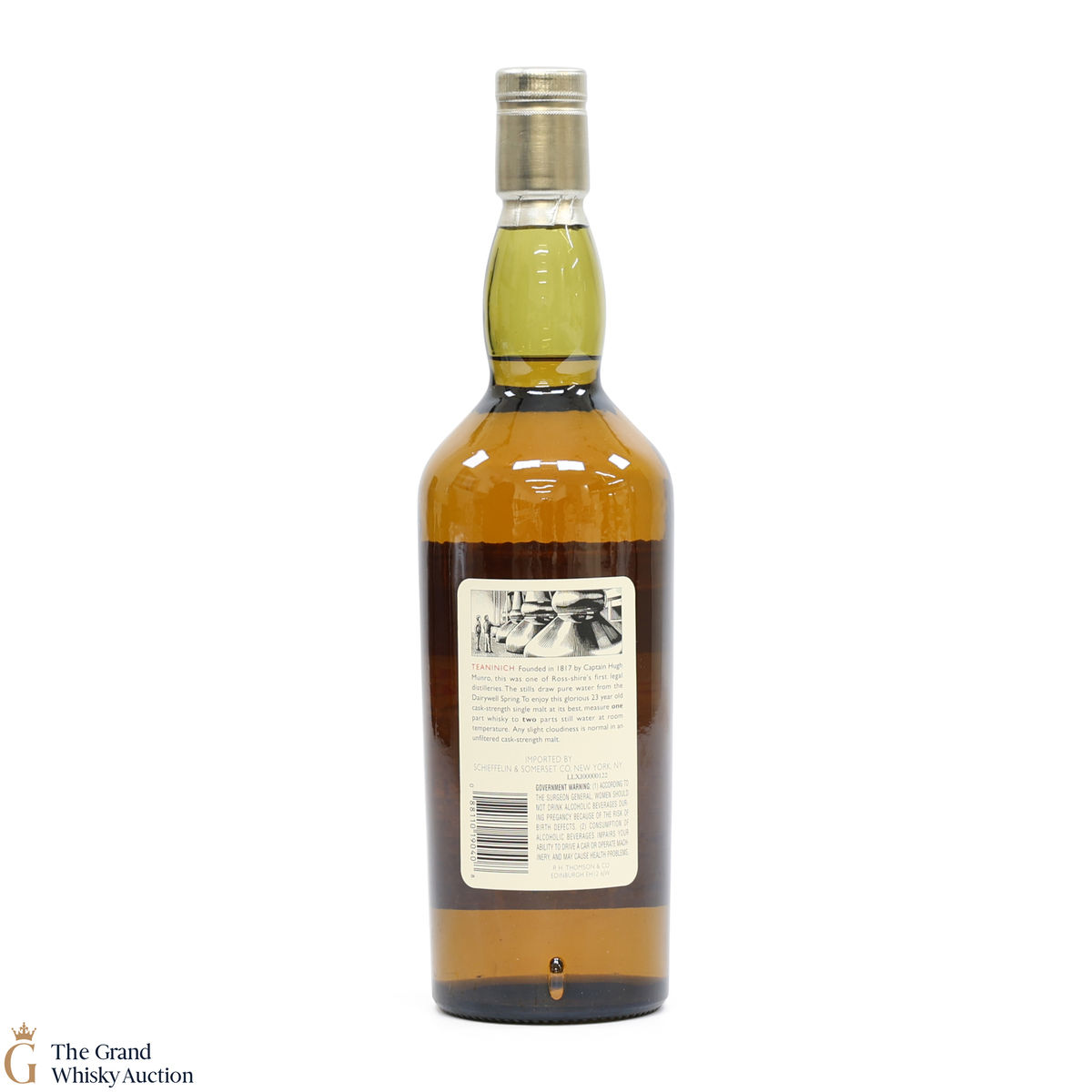 Due to the various ages of bottles and their seals, the condition of liquid is at the buyer's discretion and no claim can be lodged against failure/leakage in transit. Loss and breakage cover is available at 3% of the hammer price as standard. If the lot is not insured, no claim can be lodged against the courier or The Grand Whisky Auction for breakage or loss in transit.