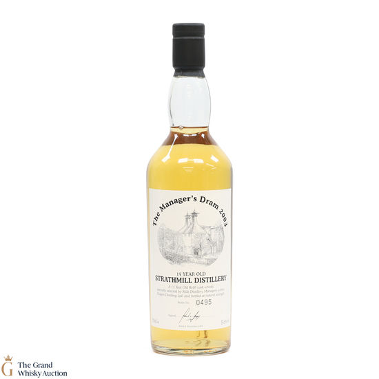 This 15-year-old single malt from the Strathmill Distillery is part of The Manager's Dram series exclusively for Diageo employees (formerly United Distillers). It was bottled at 53.5%.