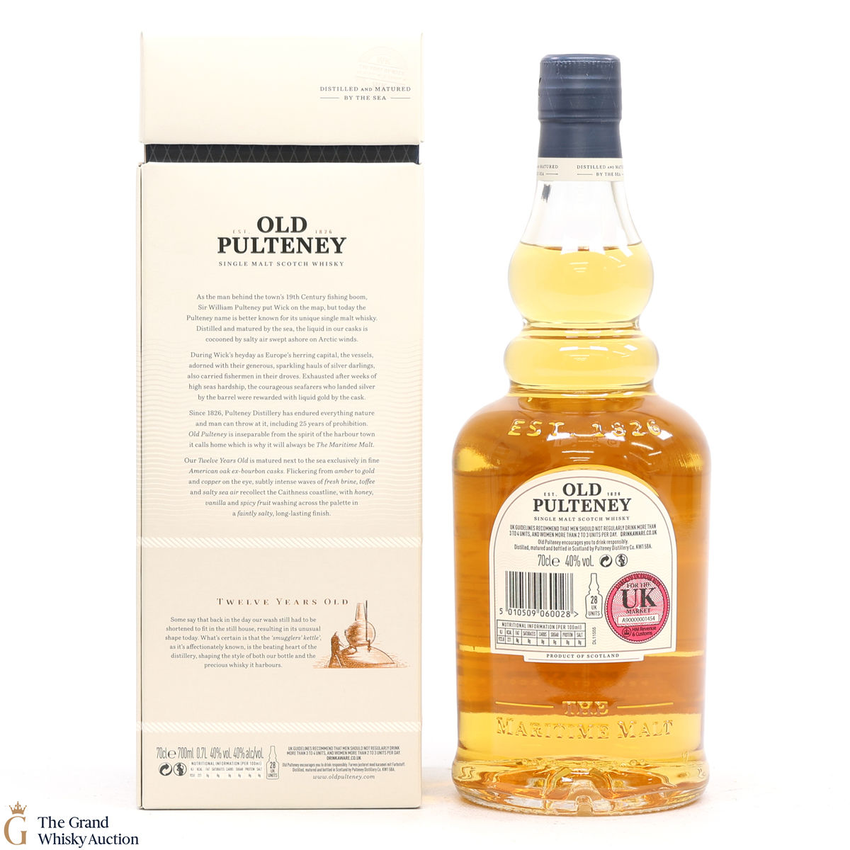 Old Pultney is known as the Maritime Malt due to the distillery's location in the very North of Scotland and this is honoured with the unique shape of the bottle.