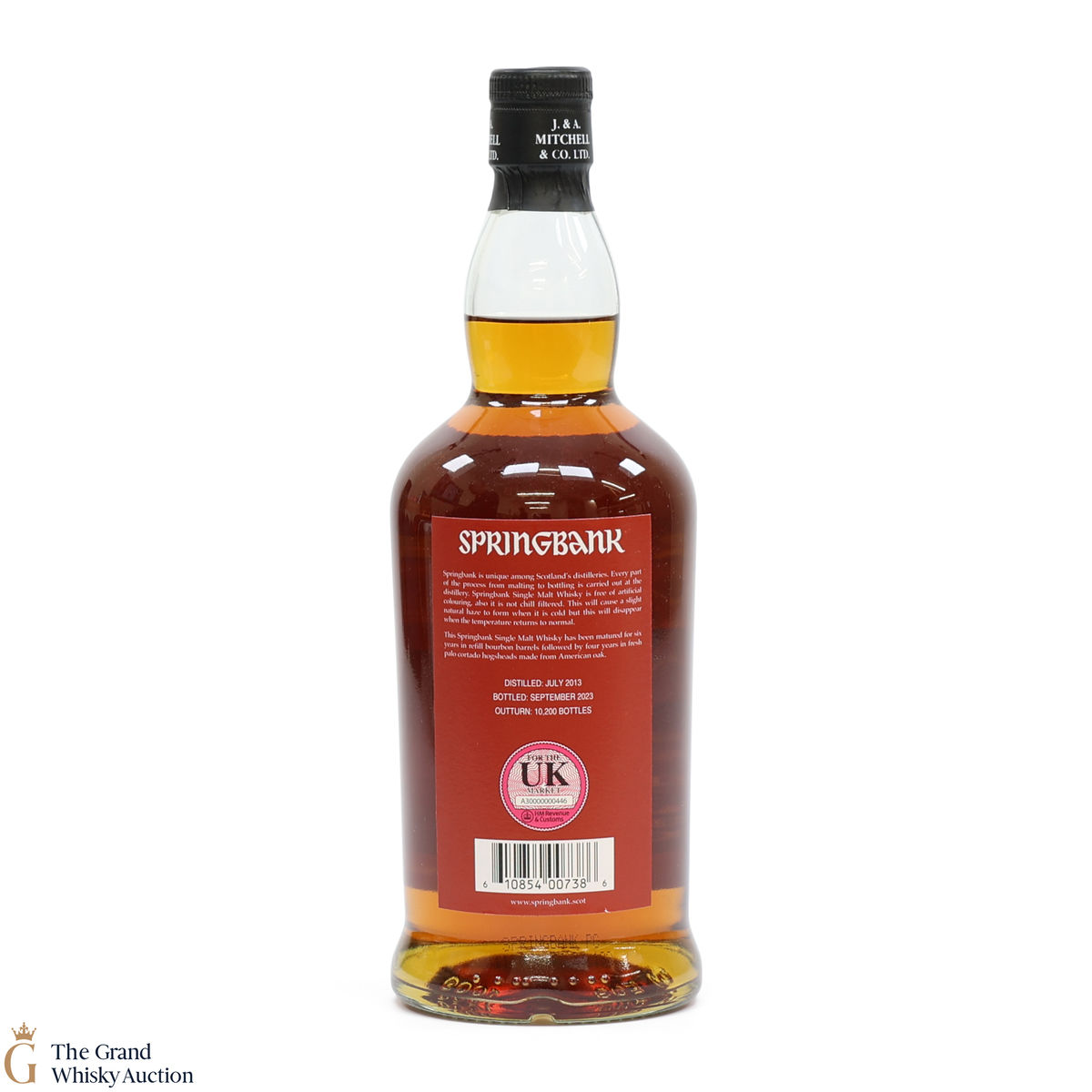 This Springbank Single Malt Whisky was distilled in July 2013 and has been matured for six years in refill bourbon barrels followed by four years in fresh palo cortado hogsheads made from American oak. It was then bottled in September 2023 at a strength of 55% ABV with an outturn of 10,200 bottles.