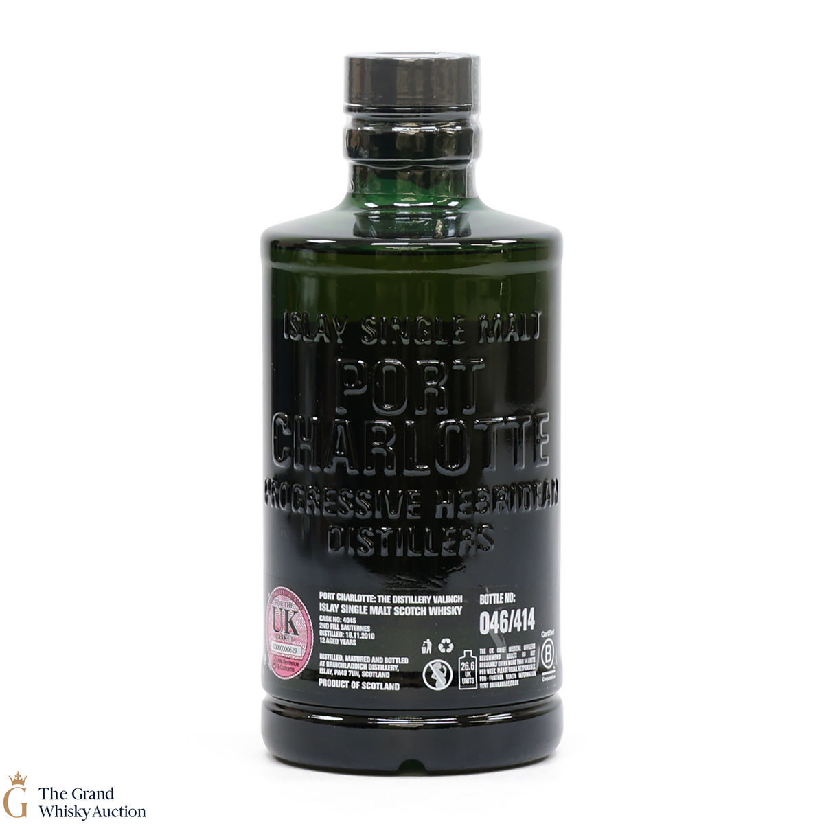 This Port Charlotte Valinch single cask is a single-cask distillery-only release. Distilled in Islay on the 18th of November 2010 and matured in 2nd Fill Sauternes #4045 for 12 years. This is one of 414 bottles.