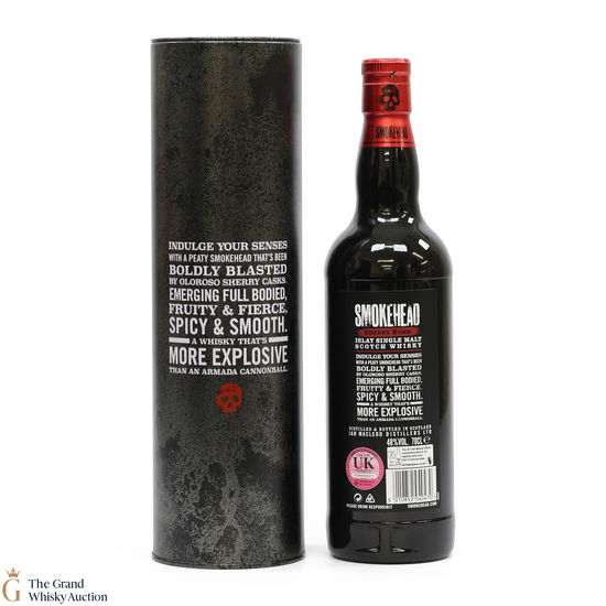 A vigorous single malt whisky hailing from Islay. Smokehead single malt is an explosive, heavily peated whisky; not for the faint-hearted! This Smokehead was held in Sherry casks which gives the smoky whisky a fruity and fierce taste.