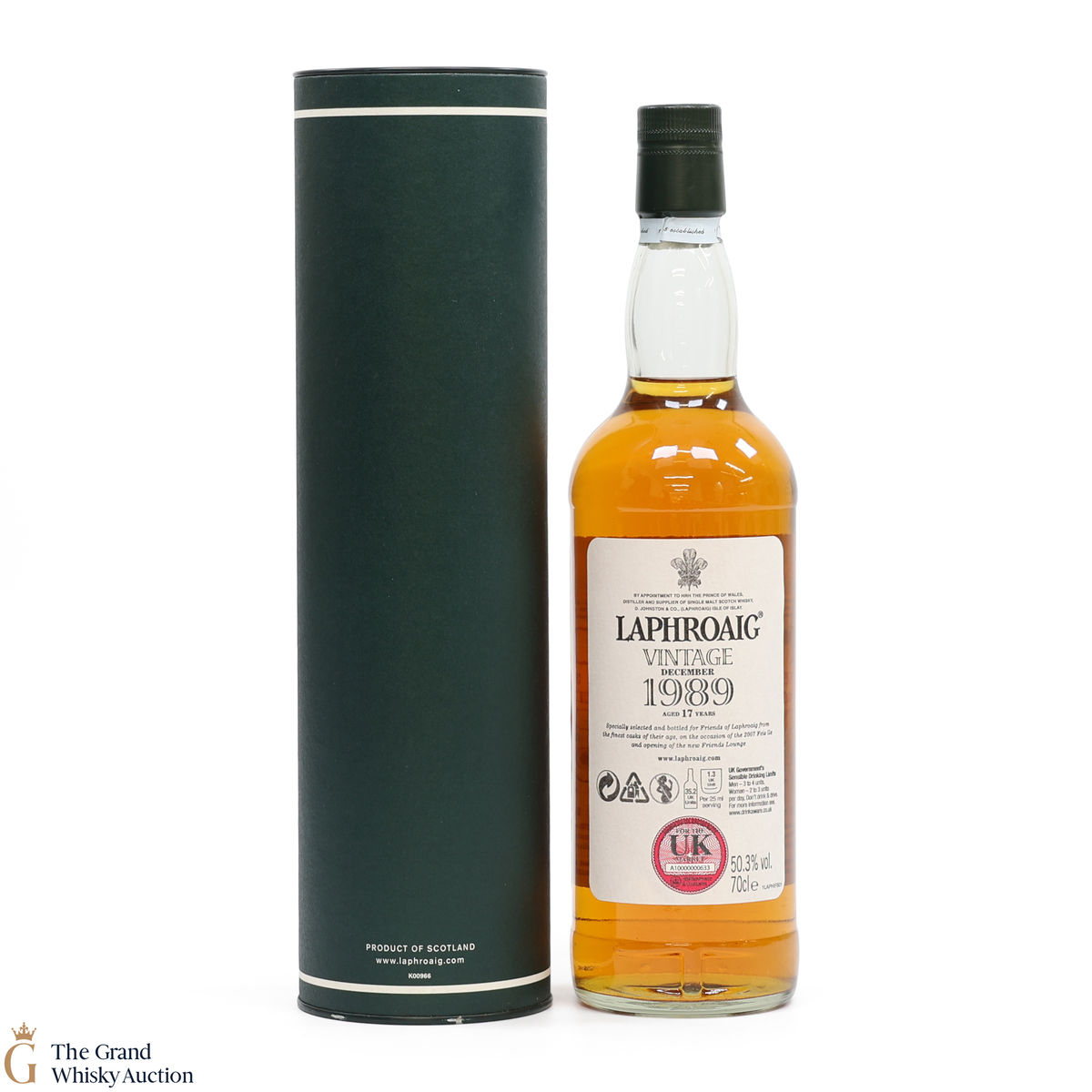 This is a 1989 vintage Laphroaig, bottled at 17 years of age. It was released for the Friends of Laphroaig for Feis Isle 2007 and to celebrate the opening of the 'Friends' lounge at the distillery.