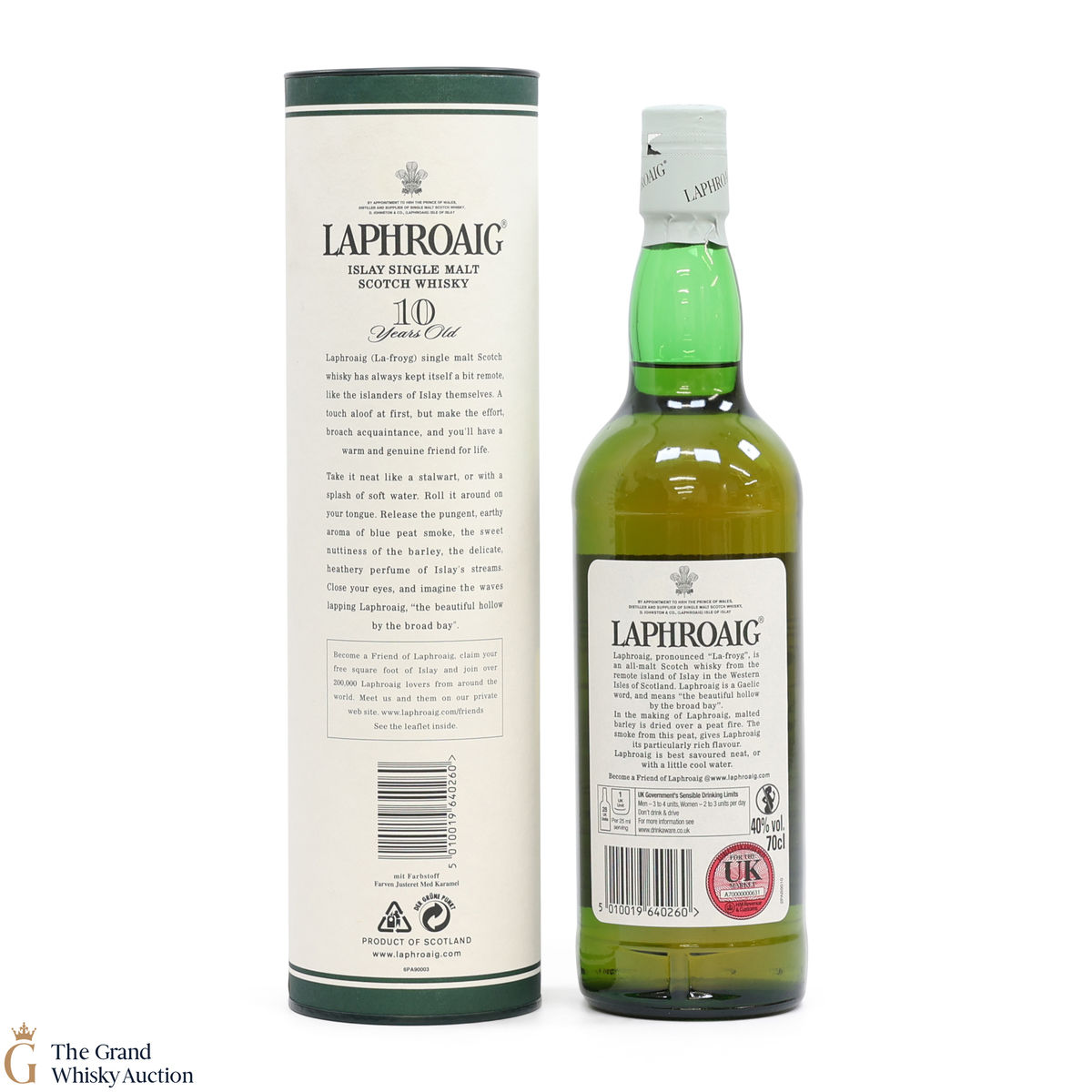 A 70cl of the medicinal 10 year old from Islay's bestselling distillery, Laphroaig. In making Laphroaig, malted barley is dried over a peat fire. The smoke from this peat, found only on Islay, gives Laphroaig its particularly rich flavour.