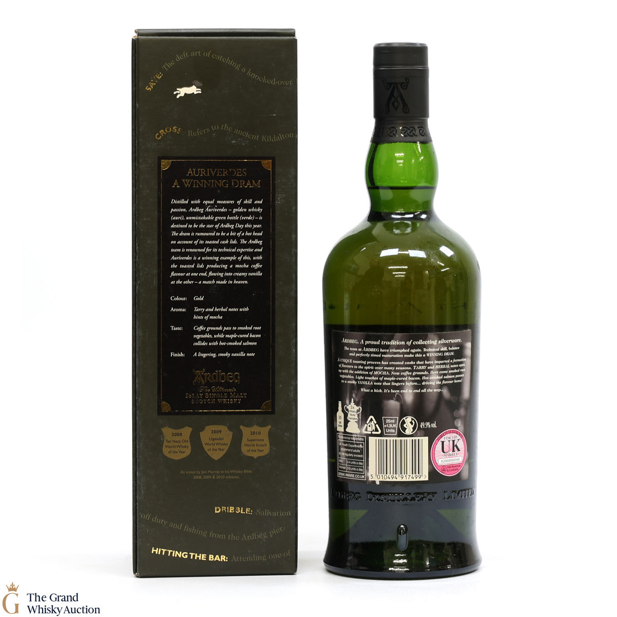 This special edition Ardbeg single malt was released on Ardbeg Day 2014 during Feis Ile. Auri(Gold) Verdes (Green) it refers to the golden whisky and the iconic Ardbeg green bottle of Ardbeg whisky. It is said to be a dram of two halves - the whisky uses toasted cask lids to create Mocha Coffee flavours that team up with creamy vanilla.