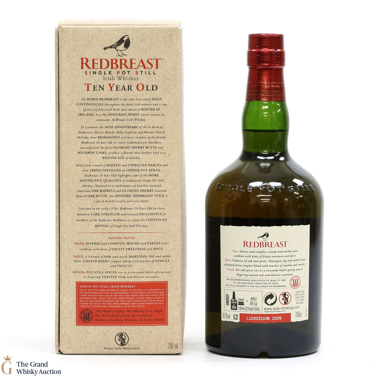 Redbreast 10 Year Old is a Bird House Exclusive bottling to celebrate the 30th anniversary of the re-birth of the Redbreast. Matured in a combination of bourbon-seasoned American oak barrels and Oloroso sherry seasoned Spanish oak butts before being bottled at a cask strength of 59.1% ABV is from batch 1.