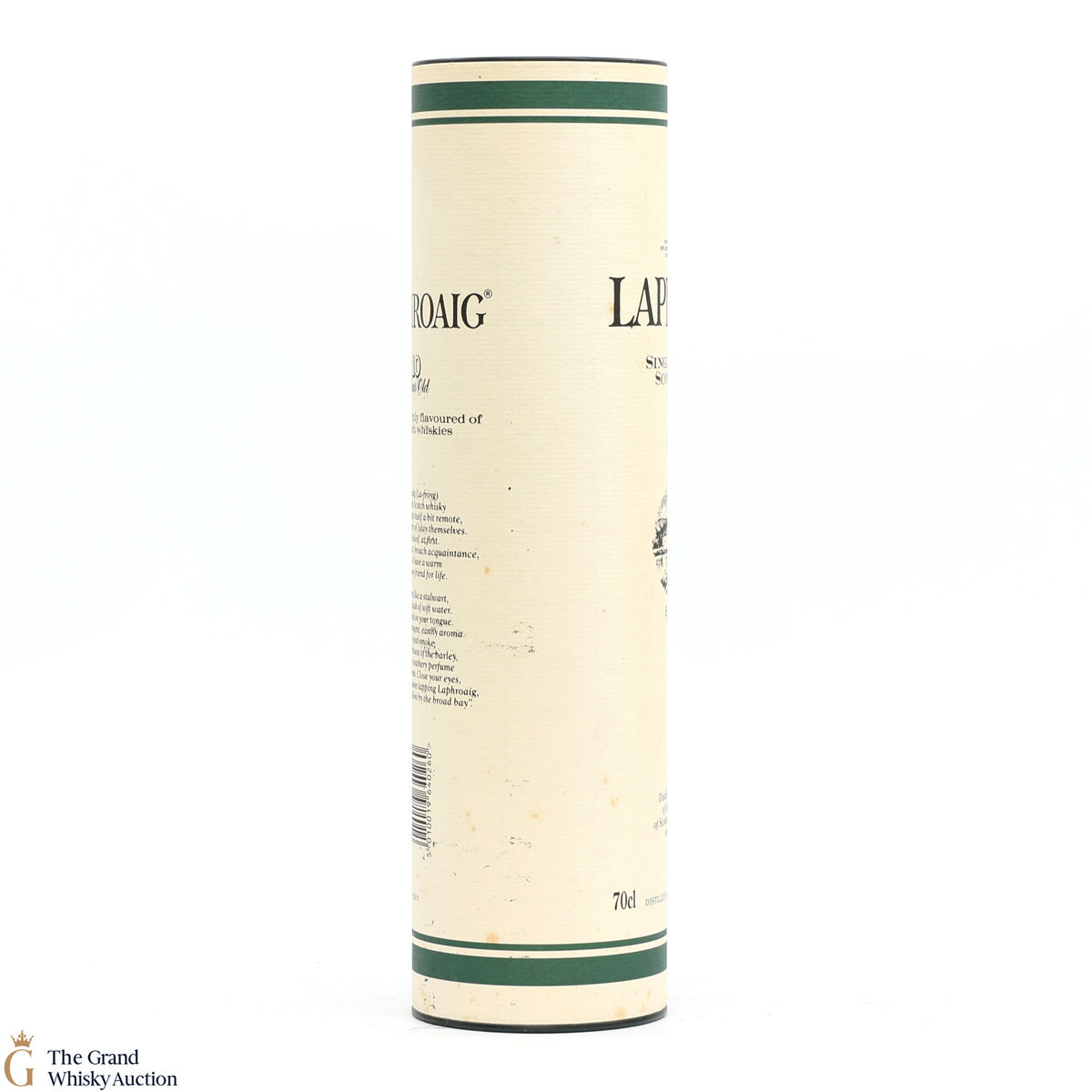A 70cl of the medicinal 10 year old from Islay's bestselling distillery, Laphroaig. In making Laphroaig, malted barley is dried over a peat fire. The smoke from this peat, found only on Islay, gives Laphroaig its particularly rich flavour.