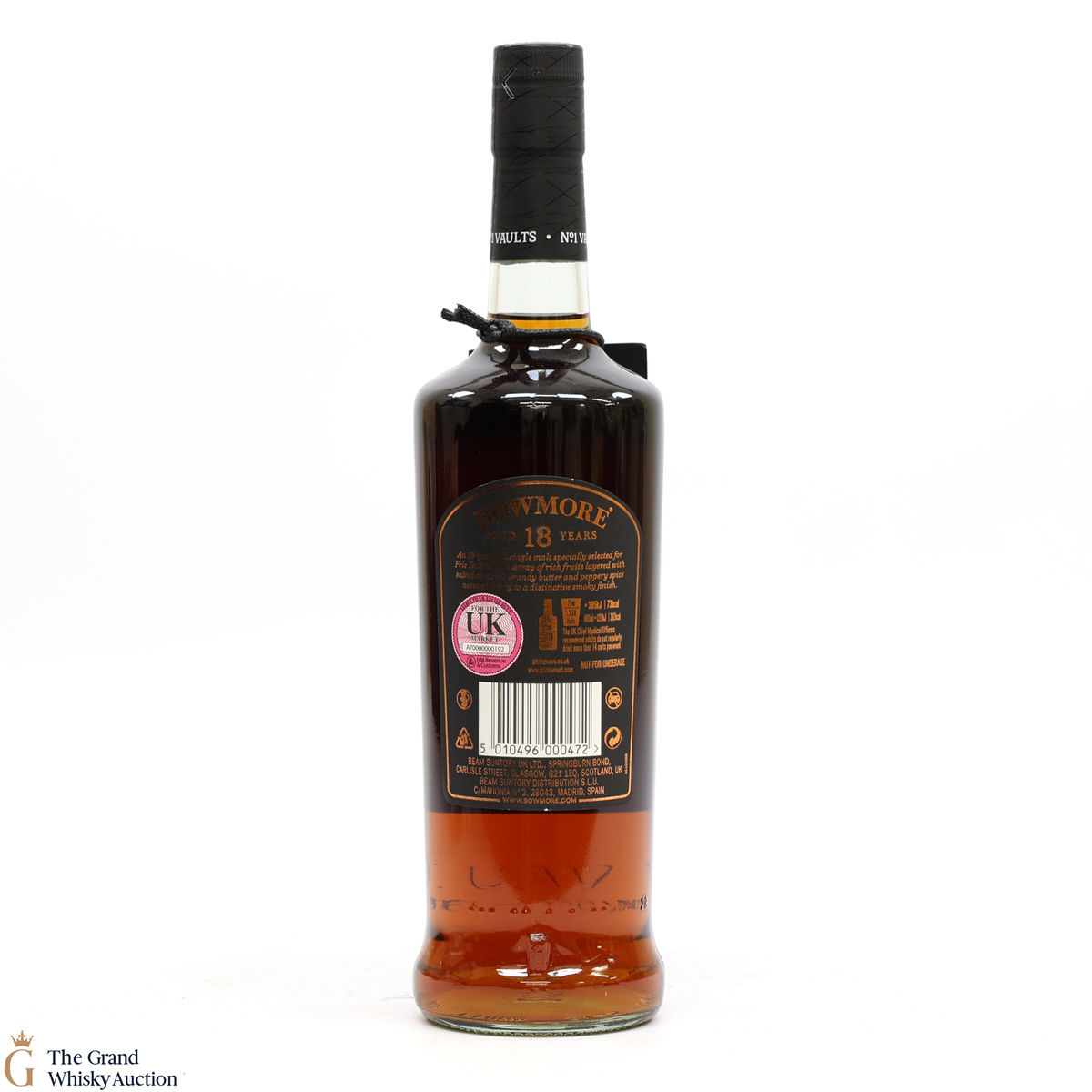 This is the Feis Ile 2023 release from Bowmore Distillery. Matured in Oloroso & PX casks for 18 years, this single malt was bottled at 52.8% ABV. This rare annual release from Bowmore is limited to just 3500 bottles.