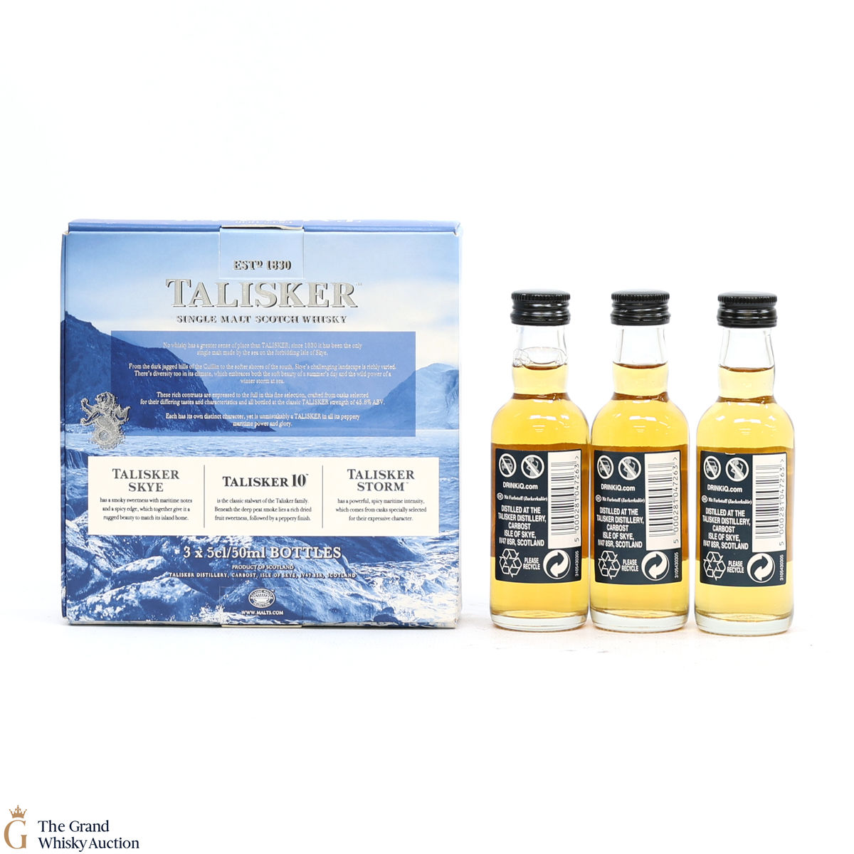This lot contains 3 x 5cl bottles, Talisker Dark Storm, Talisker 10, Talisker Skye.