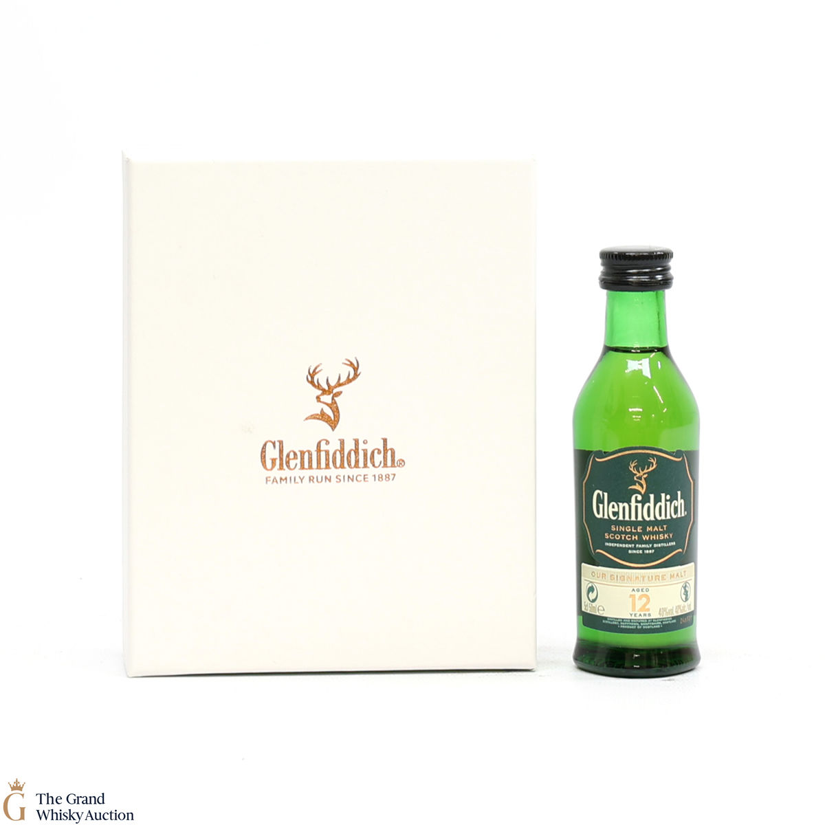 This lot includes a 5cl bottling of Glenfiddich 12 Year Old Signature Malt and a branded glass.