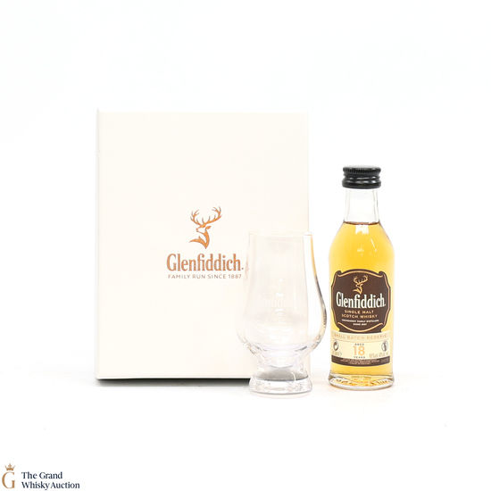 This lot includes a 5cl bottling of Glenfiddich 18 Year Old Small Batch Reserve and a branded glass.