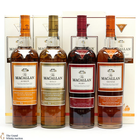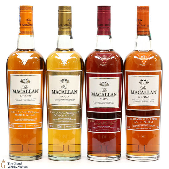 - Macallan - Sienna: a no age statement bottling. Matured in top quality sherry casks, this single malt is named Sienna to represent the naturally occurring pigment - referring not only to the hue of this expression but to the fact that The Macallan's whiskies are all released with no added colouring. 43% ABV, 70cl.