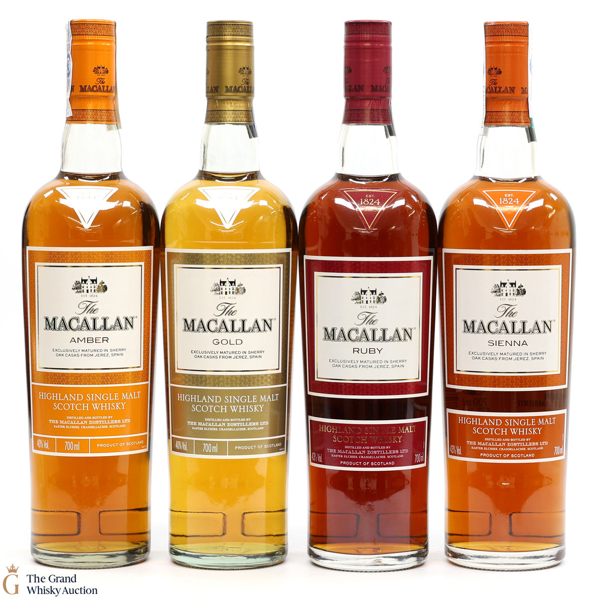 This lot contains 4 x 70 cl, Gold, Amber, Sienna & Ruby