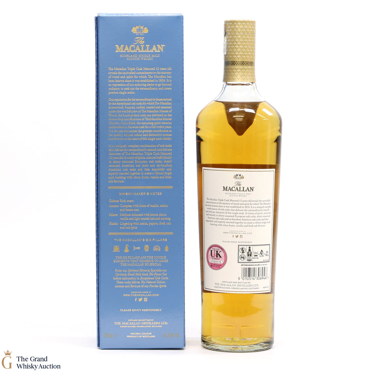 The 12 year old single malt was matured for 12 years and drawn from a combination of European sherry seasoned casks, American sherry seasoned casks and American ex-bourbon casks. It is part of Macallan's Triple Cask range which was launched in 2018, taking the place of the Fine Oak range.