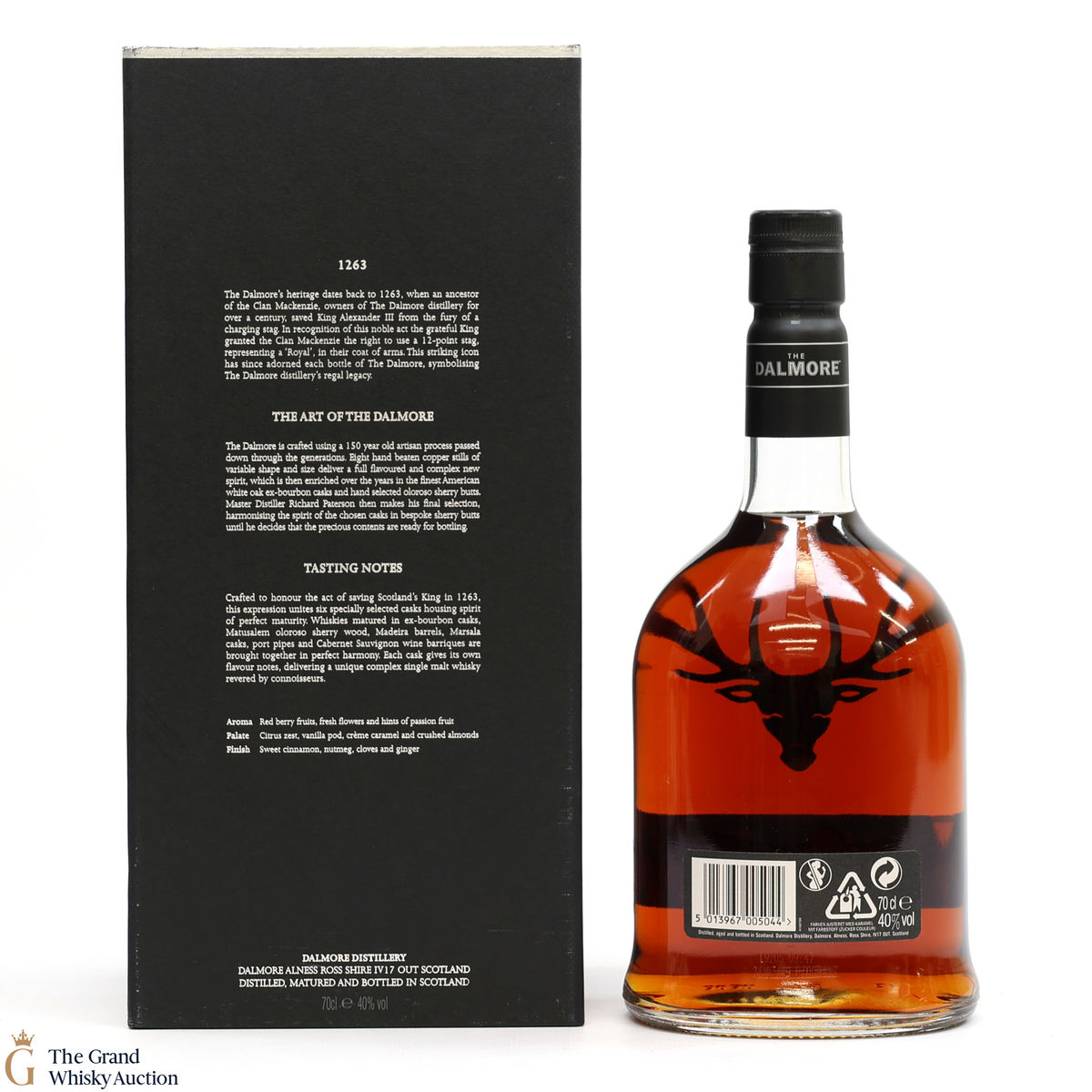 To make The Dalmore King Alexander III, Master Distiller Richard Paterson specially selected 6 casks of differently aged Dalmore malts matured in wine, Madeira, sherry, marsala, Kentucky bourbon and port casks. A remarkable feat of blending crafted to honour the act of saving Scotland's King in 1263. It is a rich, fruity Highland single malt.