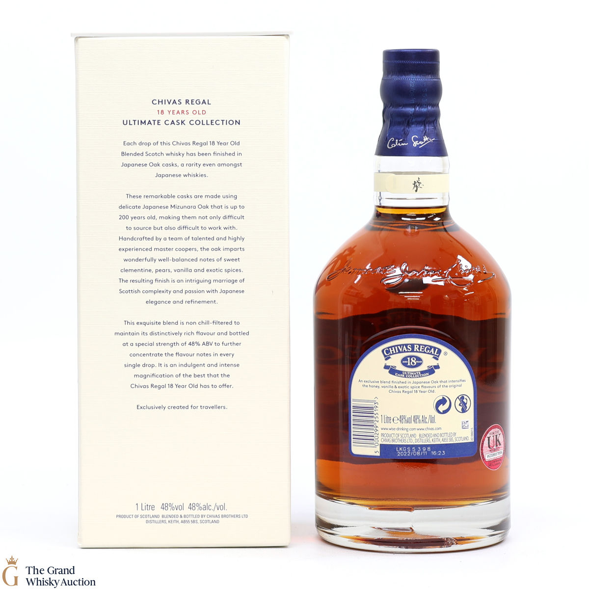 Each drop of this Chivas Regal 18 Year Old Blended Scotch whisky has been finished in Japanese Oak casks, a rarity even amongst Japanese whiskies.