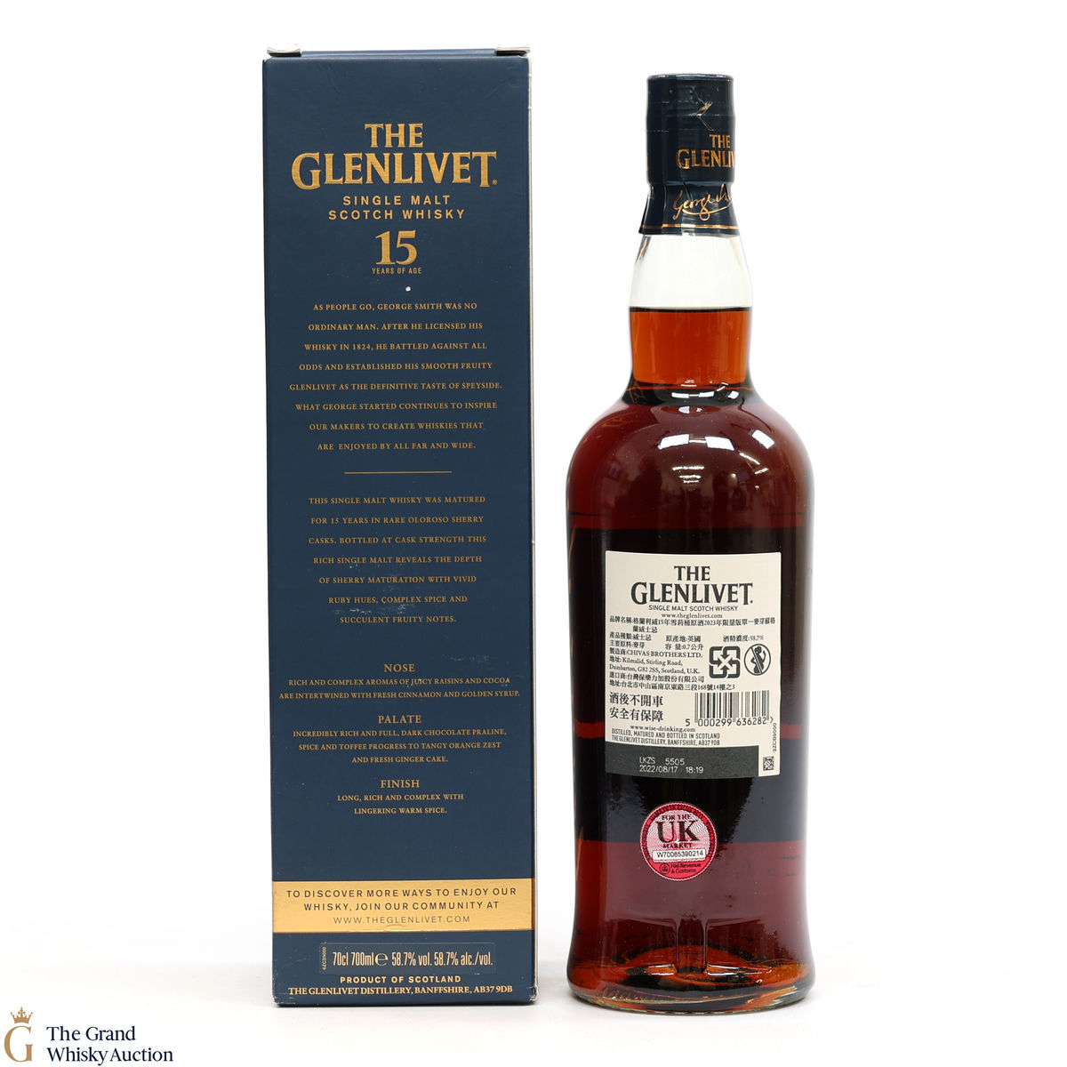 This 15-year-old expression from The Glenlivet Distillery was matured in oloroso sherry casks and bottled at cask strength as a 2023 limited edition.