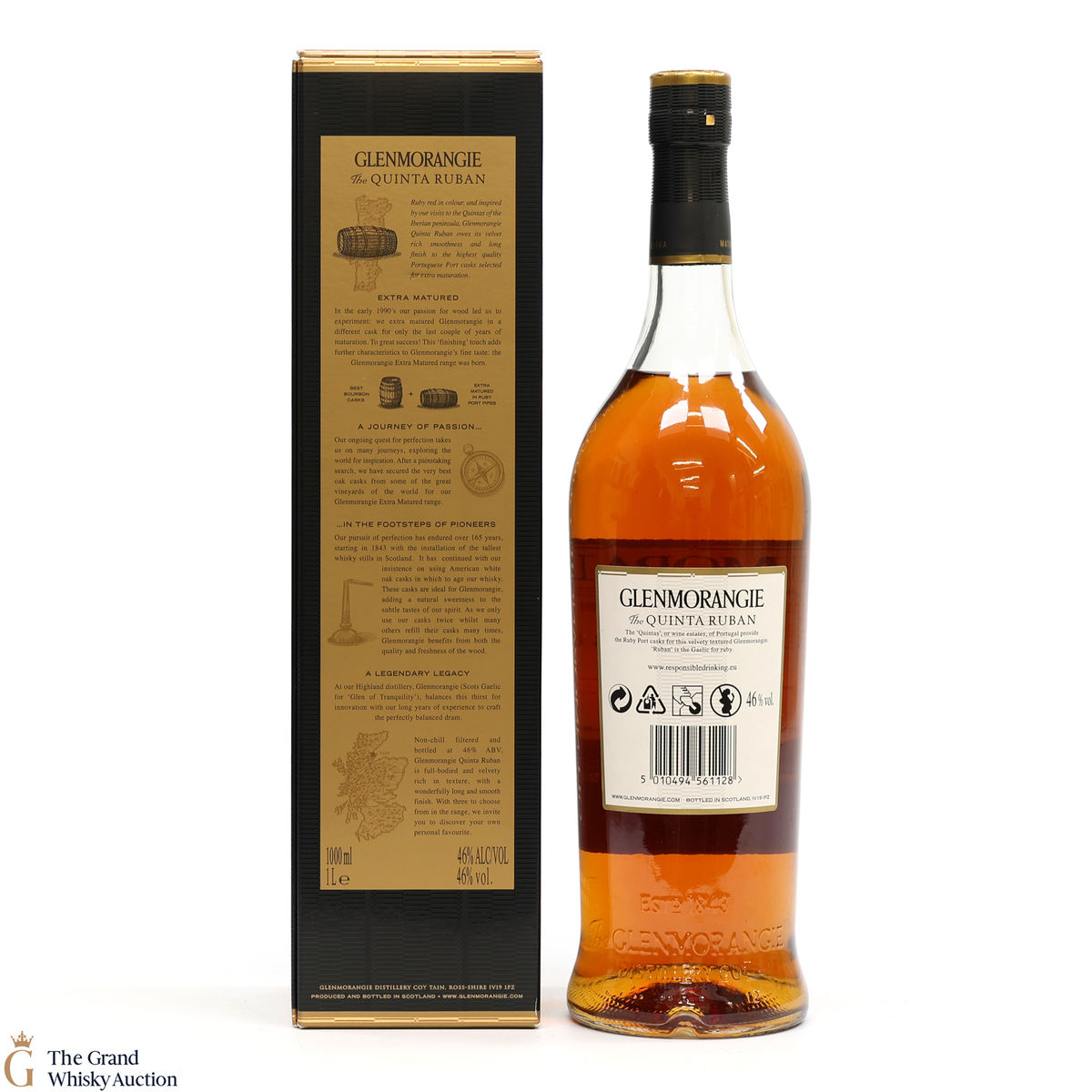 Glenmorangie Quinta Ruban is matured in bourbon casks before finishing in the finest Ruby Port casks from the "Quintas" or wine estates of Portugal. Ruban is Gaelic for Ruby.