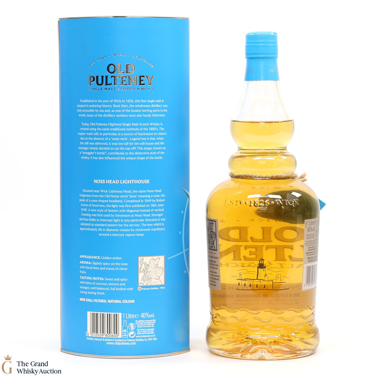 This travel retail exclusive from Old Pulteney was named for the Noss Head lighthouse, near Wick), this Old Pulteney single malt Scotch whisky was released as part of a travel retail series in 2013. It's an American oak ex-bourbon-cask matured single malt. This is a 1L bottle.