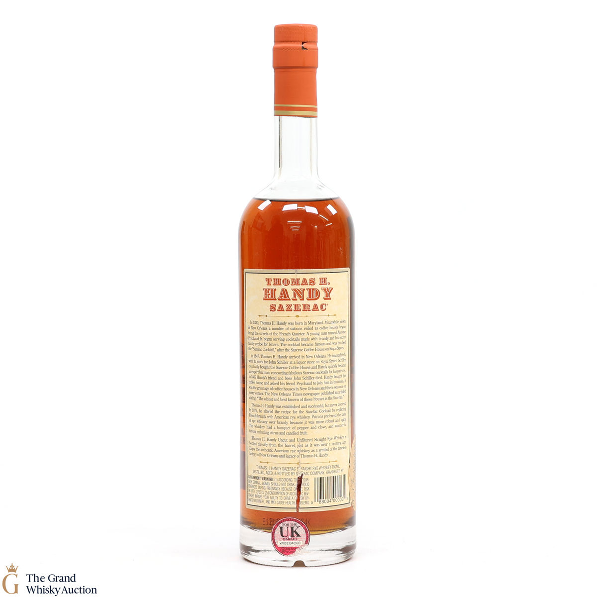 This collection is dubbed the antique collection and celebrates famous figures. The companies founder, Thomas H. Handy, is on the front of this bottle with the picture of the Sazerac Coffee House where everything started.