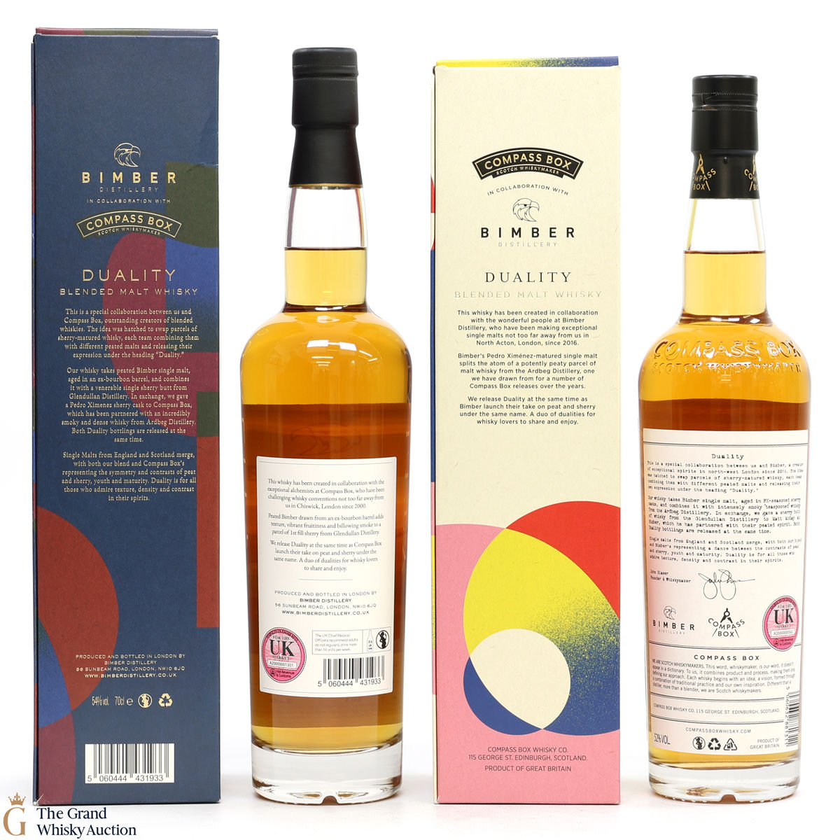 Compass Box - Duality Bimber Blend 54% 70cl It takes a core of smoky whisky from Ardbeg Distillery and combines it with a rich Pedro Ximénez-matured Bimber whisky. Bottled at 54% ABV, one of 1,050 bottles available.