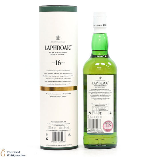 This Islay Single Malt was distilled at the Laphroaig Distillery, then poured into first-fill ex-bourbon barrels to age for 16 years.
