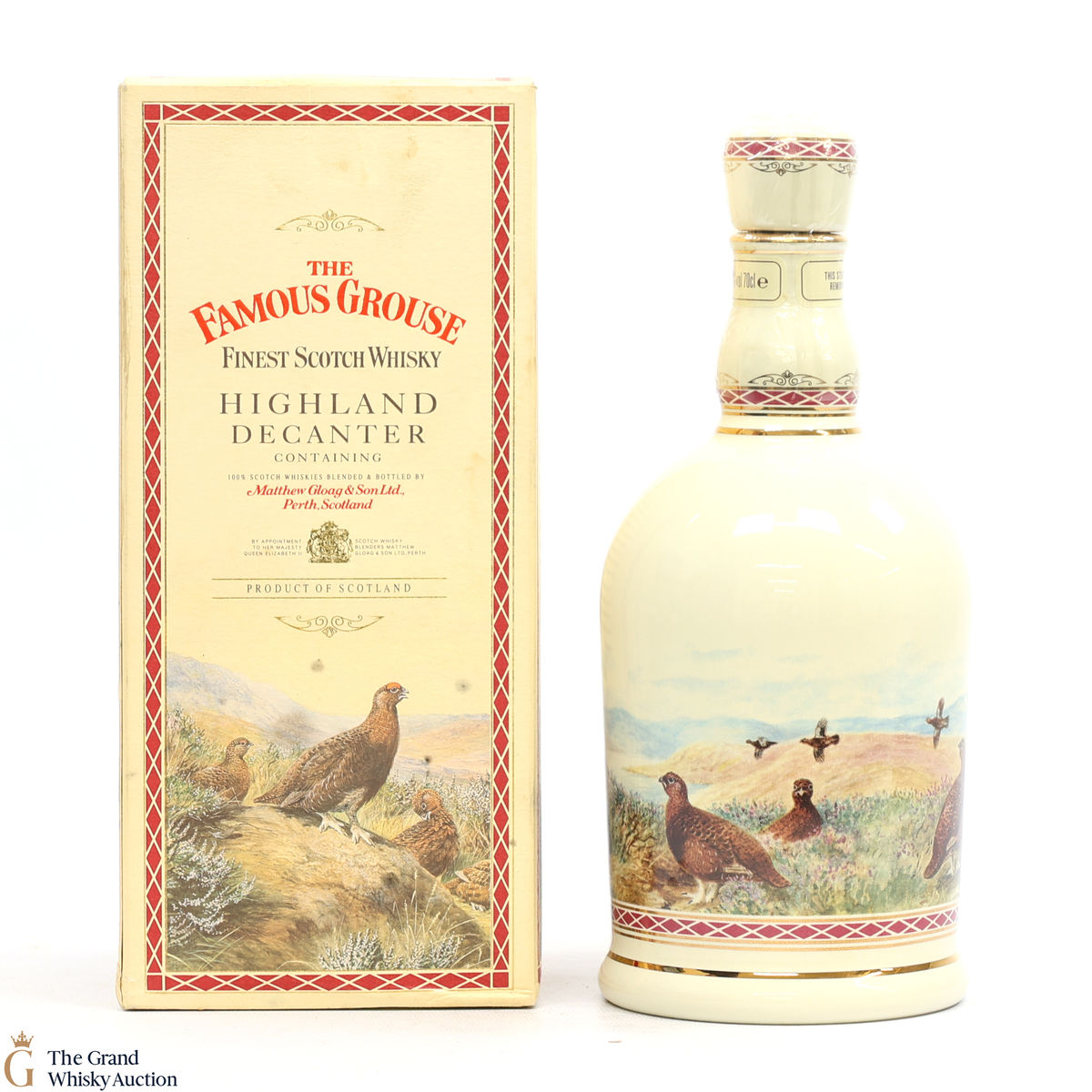 A bottle of Famous Grouse housed within a ceramic 'Highland' decanter. First blended by Matthew Gloag & Son in 1896, as of 2013, it has been the highest selling brand of whisky in Scotland since 1980.