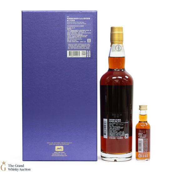 Matured in a Vinho Barrique, this limited edition is one of just 240 individually numbered bottles released. Specially selected by the Kavalan Master Blender, it was bottled by hand at the distillery, without any colouring, chill-filtration at the natural cask strength of 56.3% - 70cl and 54% - 5cl.