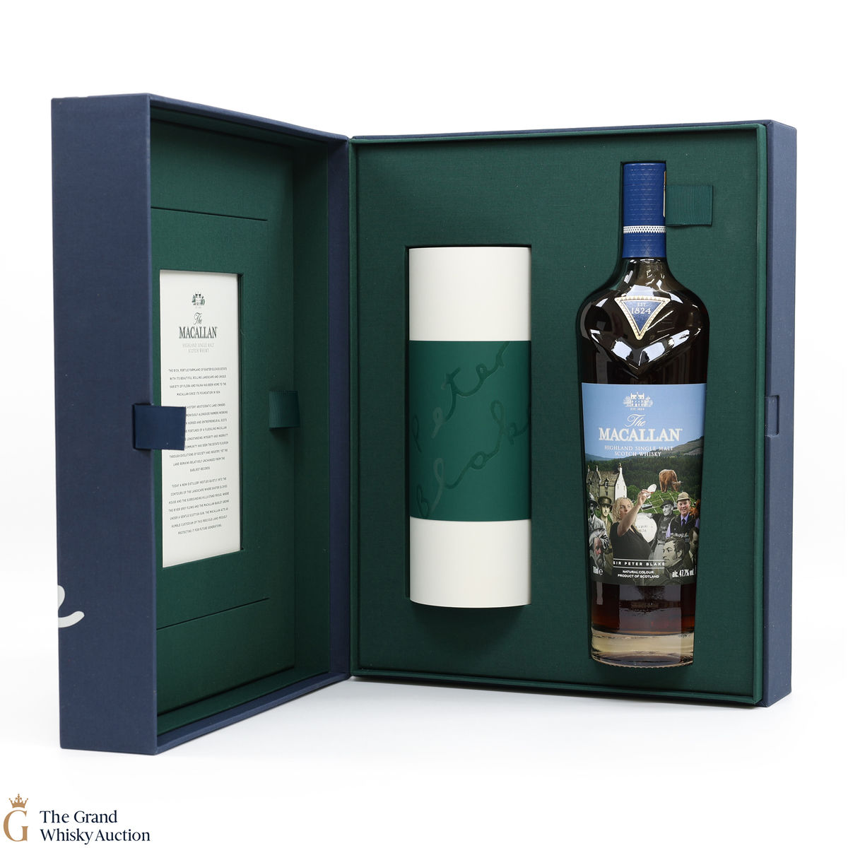 Along with this unique bottle of whisky is a scroll of artwork showing Sir Peter Blake's distinct style and a certificate detailing the history and heritage on which Sir Peter's art was based. There is also a piece of tracing paper which provides information on each character from The Macallan's history that Sir Peter chose to include in his art.