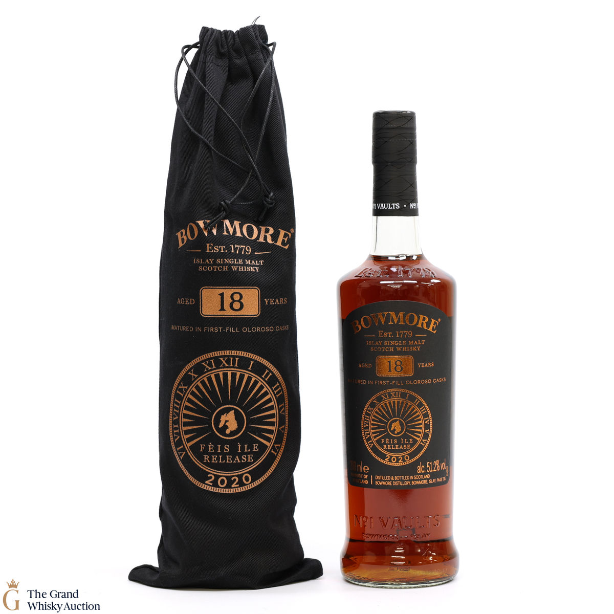 This is the Feis Ile 2020 release from Bowmore Distillery. Matured in a first-fill Oloroso Sherry cask for 18 years, this single malt was bottled at 51.2% ABV. This rare annual release from Bowmore is limited to just 3000 bottles.