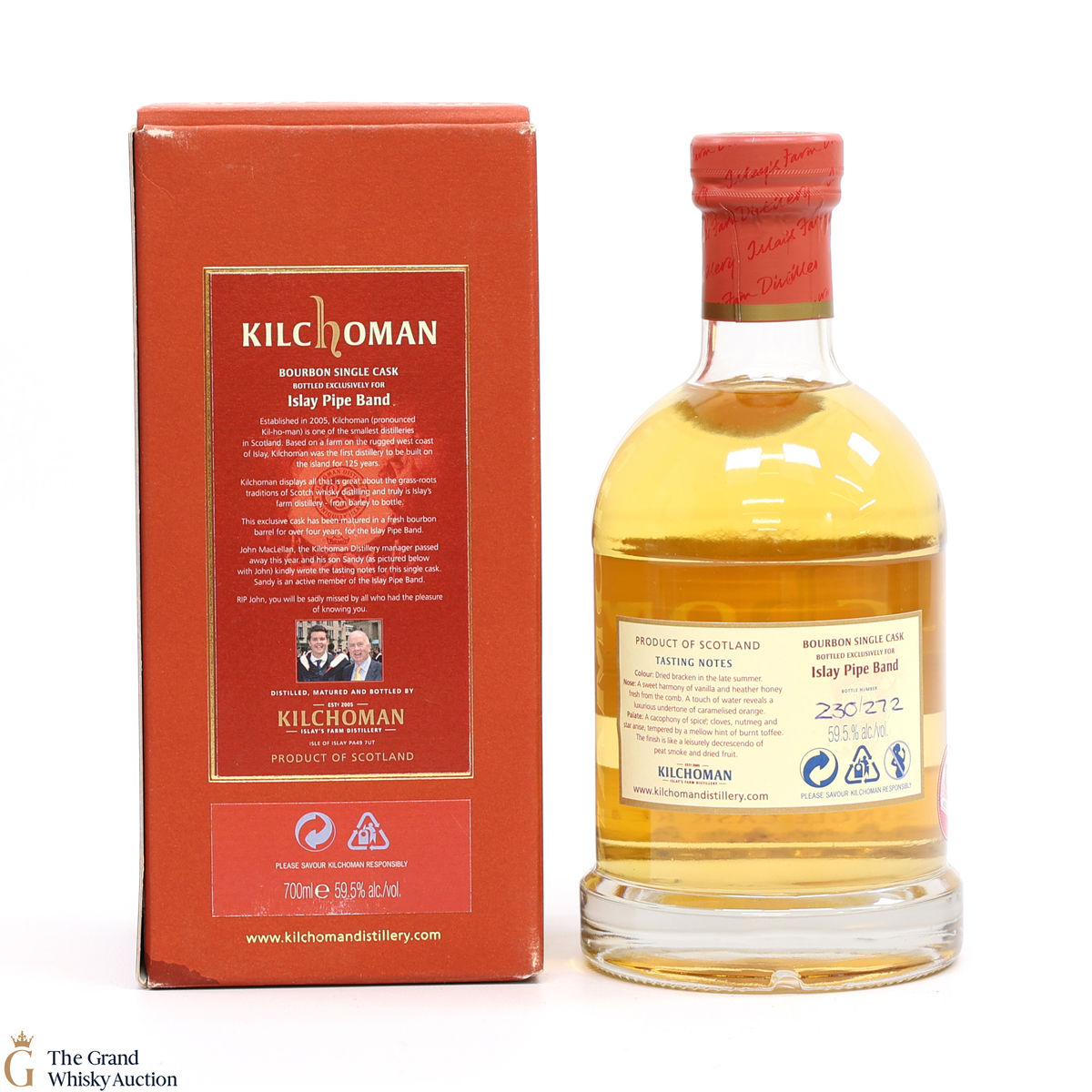 Kilchoman Distillery has sponsored the Islay Pipe Band since 2012 and this sponsorship has taken the form of a cask of whisky selected by John MacLellan, bottled and sold from the distillery with all the proceeds going to the Pipe Band.